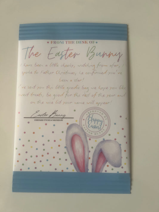 Happy Easter bunny chocolate wrapper blue (chocolate not included)