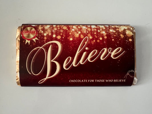 Believe chocolate bar wrapper