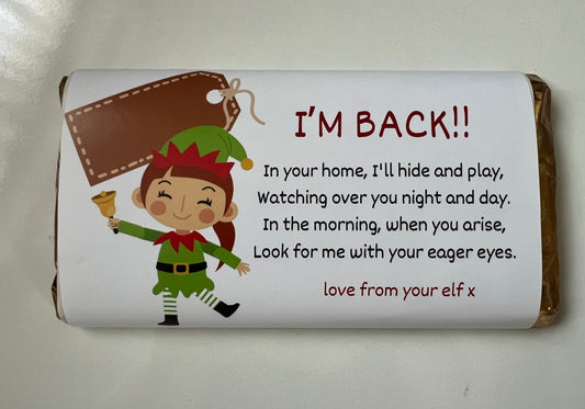 Elf arrival chocolate bar wrapper