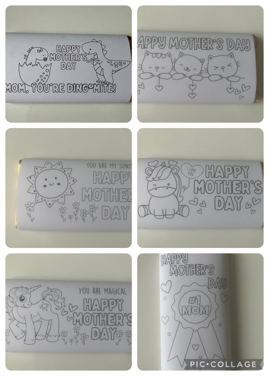 Mothers day colour your own set of 6 chocolate bar wrapper