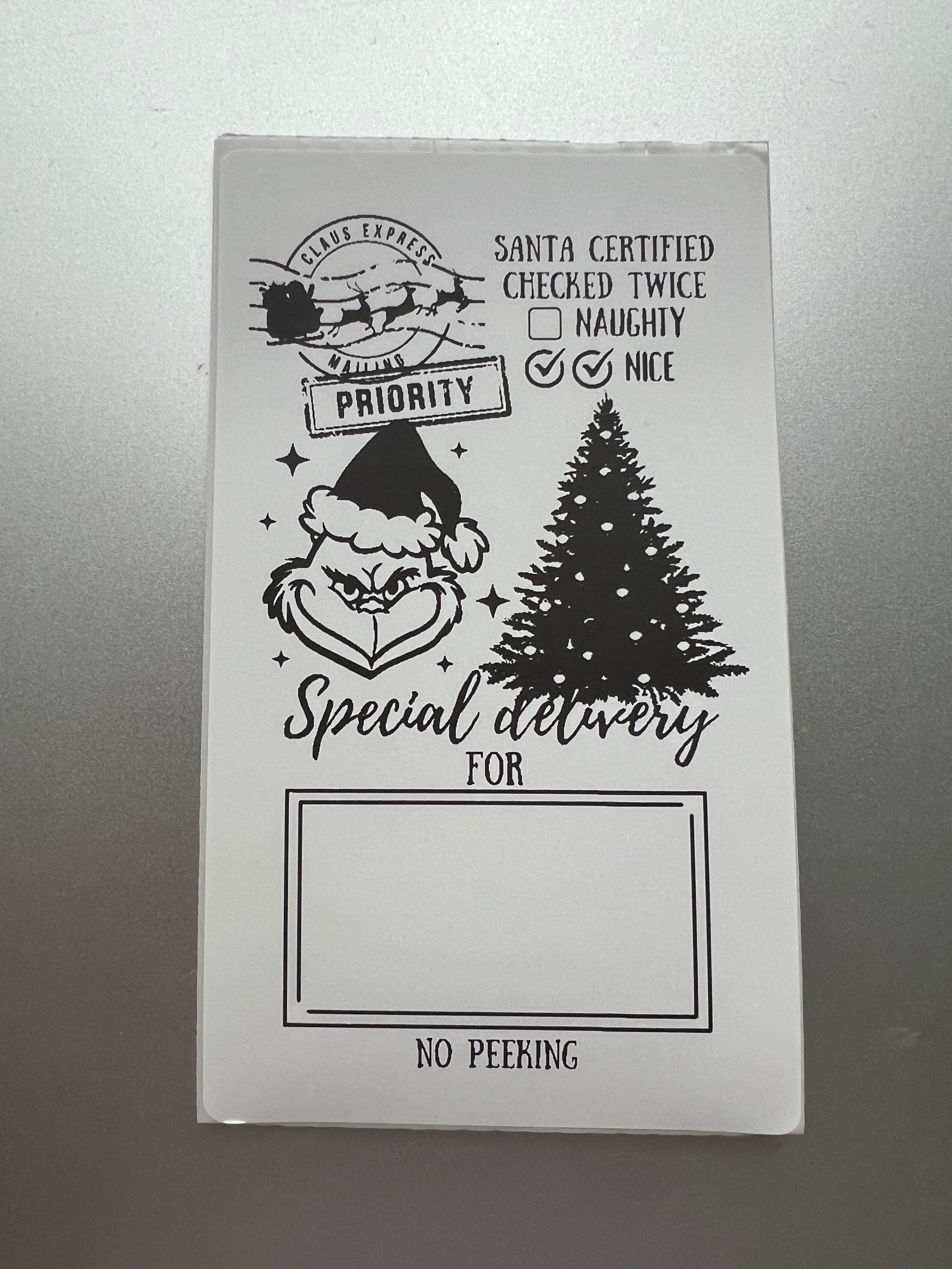 Printed grinch postage label